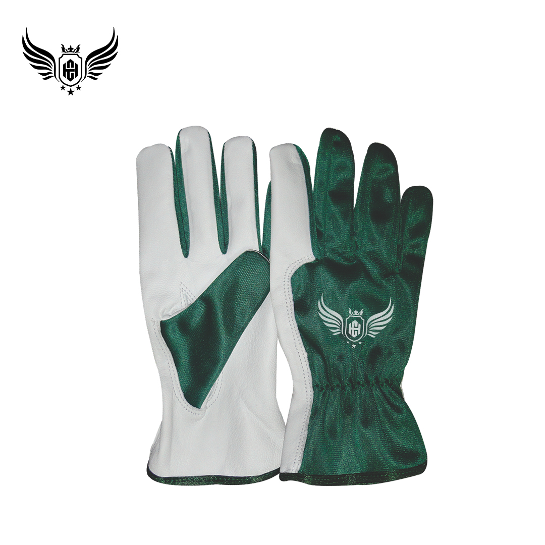 Soft, supple and durable goatskin leather of 0.70-0.80mm thickness, back cotton fabric, 03 finger tips in leather, elastic wrist with velcro closure.