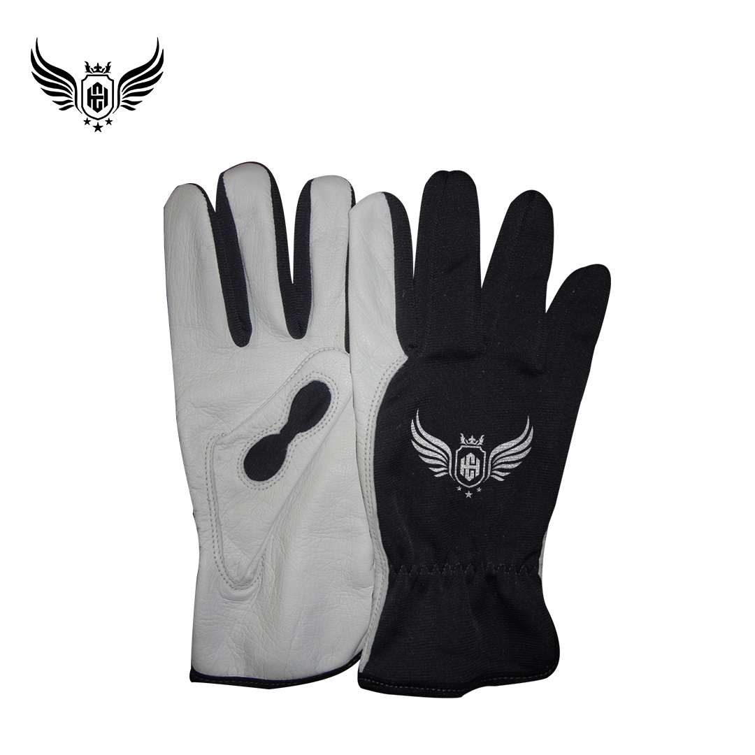 Soft, supple and durable goatskin leather of 0.70-0.80mm thickness, back cotton fabric, 03 finger tips in leather, elastic wrist with velcro closure.