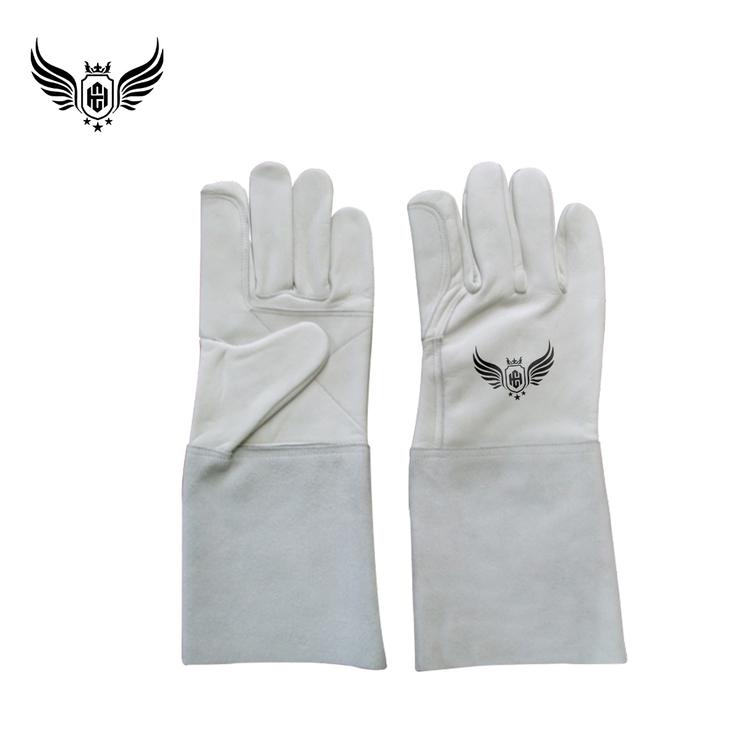 Soft, supple and durable cowhide leather of 1.10-1.20mm thickness, wing thumb, re-inforced palm and index finger, baack cowhide, 15cm split cuff.